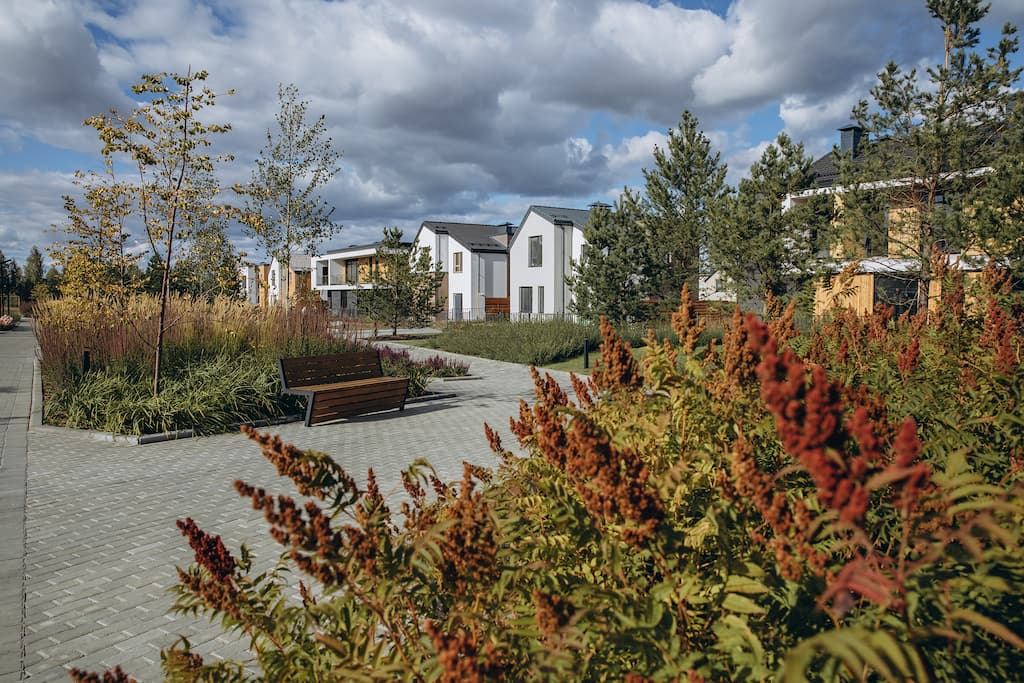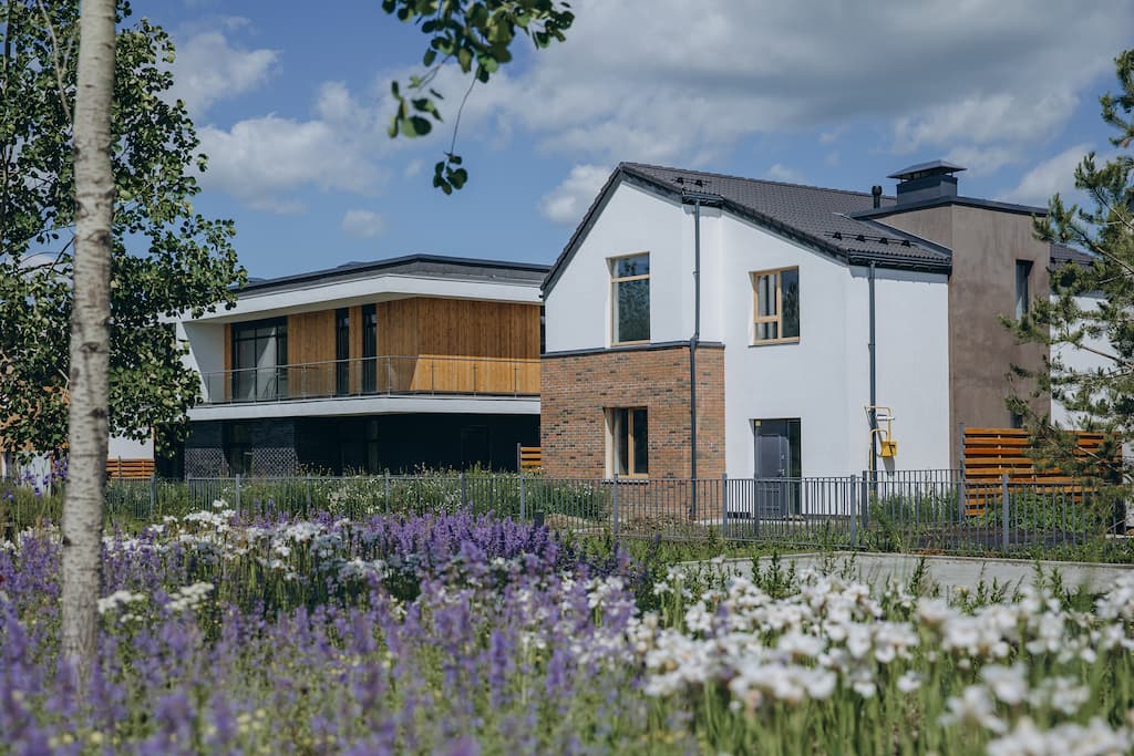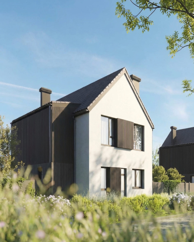 Все дома выполнены в сдержанном скандинавском стиле. Разнообразие достигается с помощью динамичной сменяемости фасадов: на одной улице нет двух одинаковых домов.