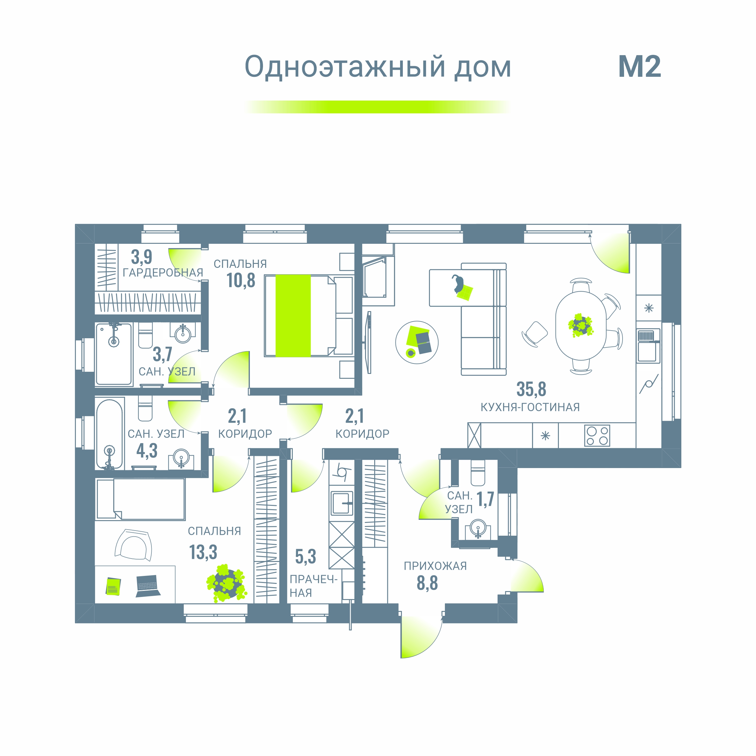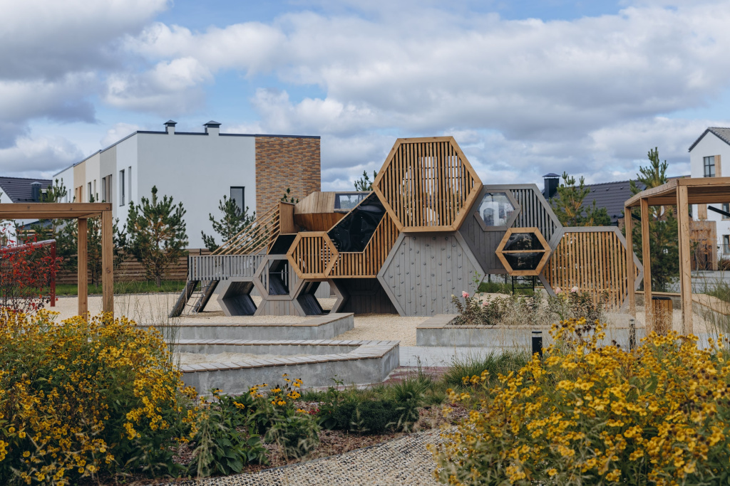 Локальные скверы, детские, спортивные площадки созданы согласно индивидуальным эксклюзивным проектам.